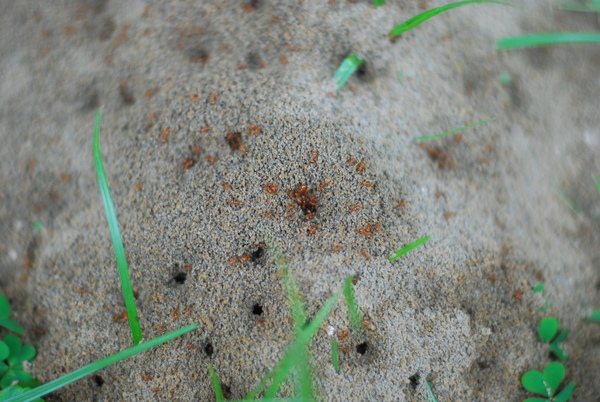 旋即拿水管把這窩惡蟻給沖毁~~