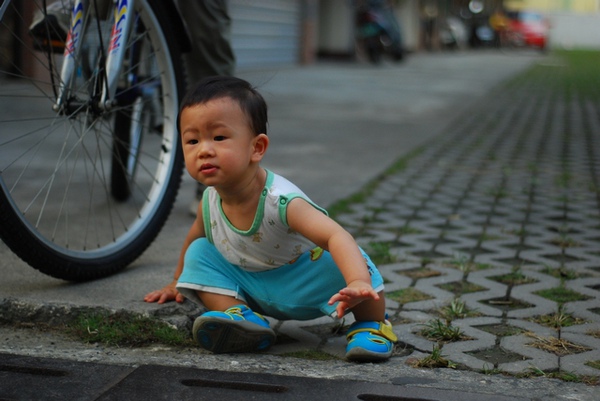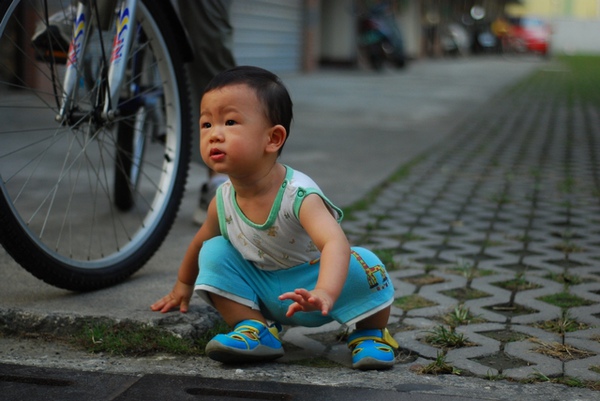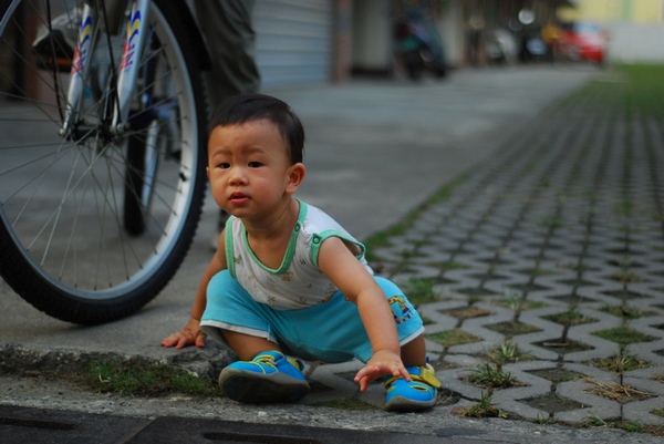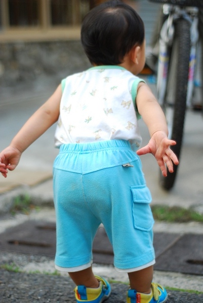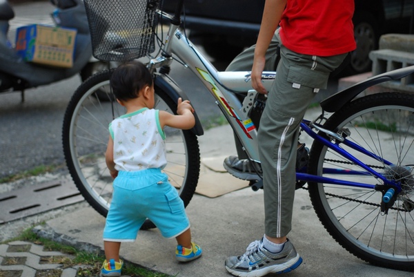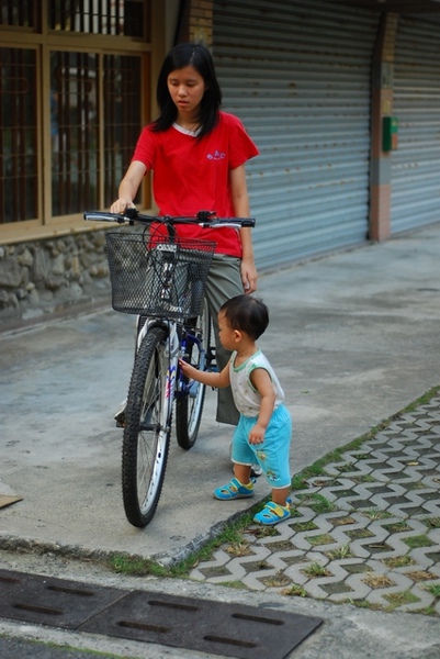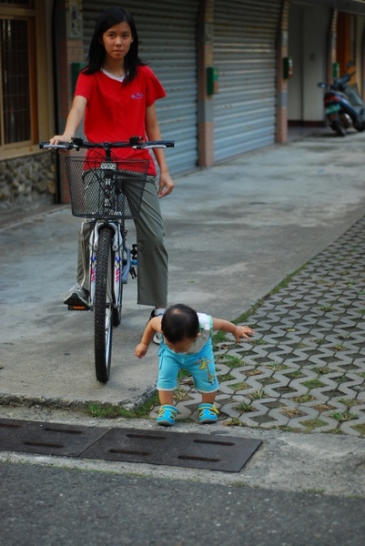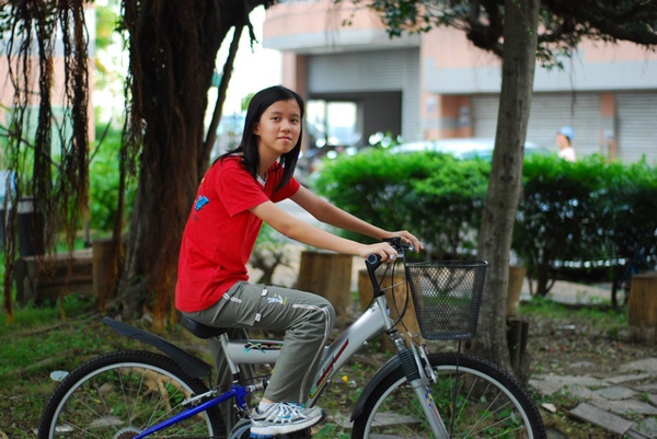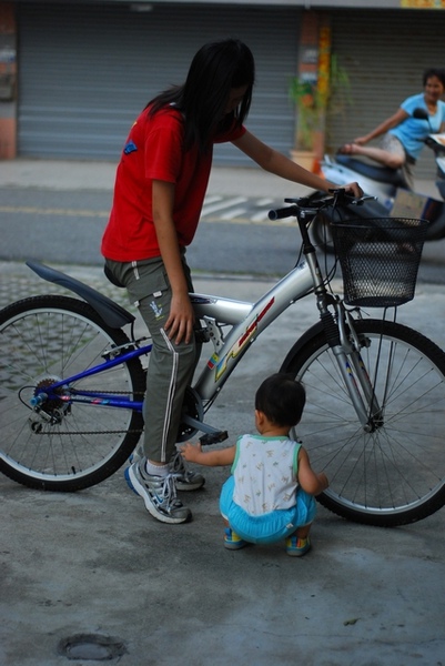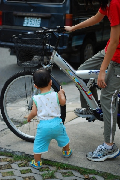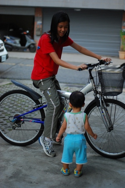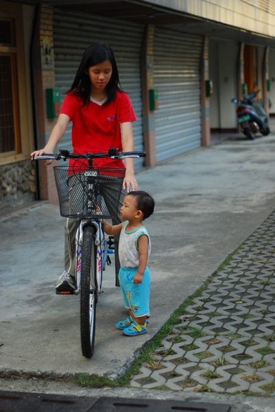 韋瑄姐姐已經完成規定她要騎的配額回來 -- 社區後面繞一圈 ,