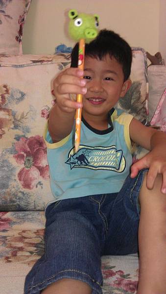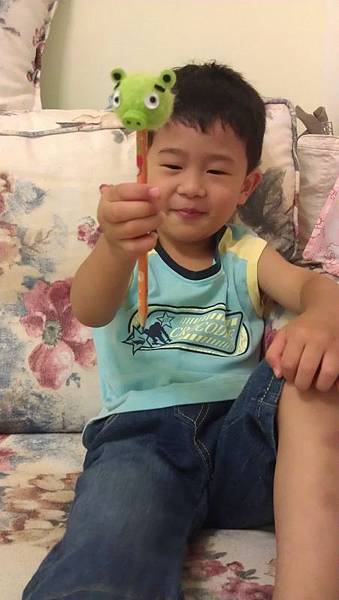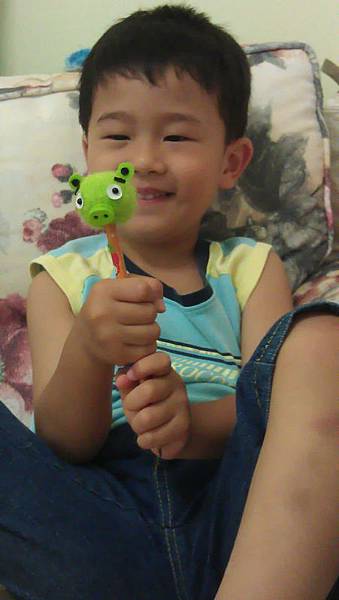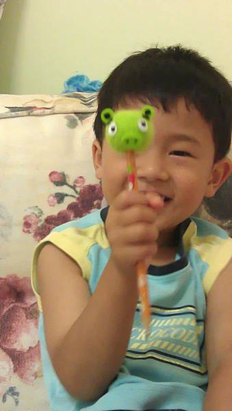 然後跟他一起把眼睛鼻子耳朵黏上去,我沾白膠他負責放上去,