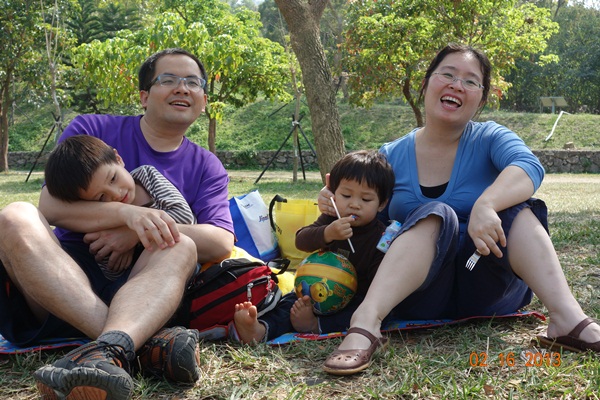 旁邊觸目所及所有的野餐桌都"客滿",又是年假惹的禍。。。還好我們有一張野餐墊~~~