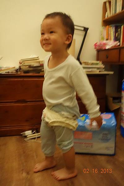 晚上大肚子弟弟穿了兩條哥哥的內褲,太好笑了,趕快去拿相機只照到一張!