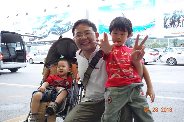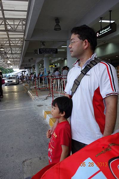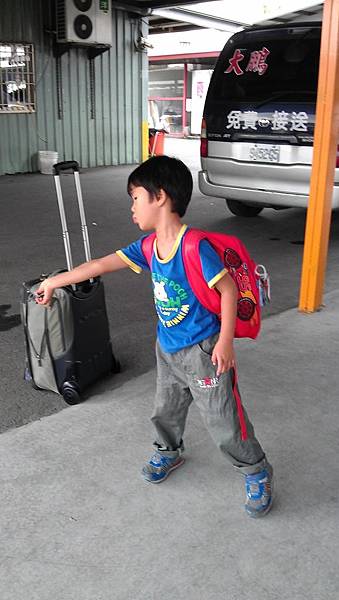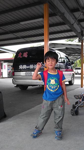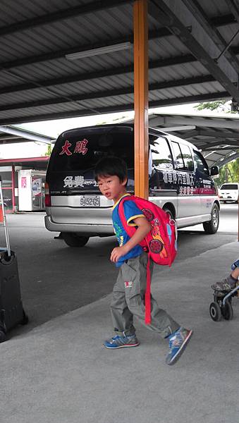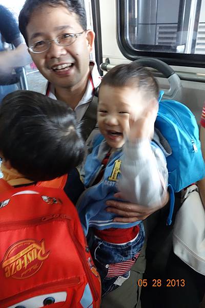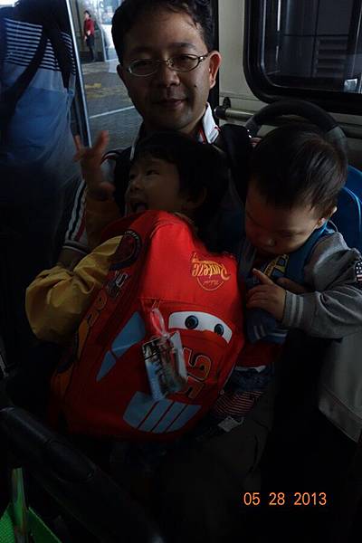 上圖是濕悶熱擠的接駁車上的勇爸。。。
