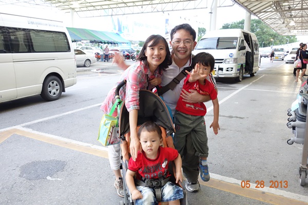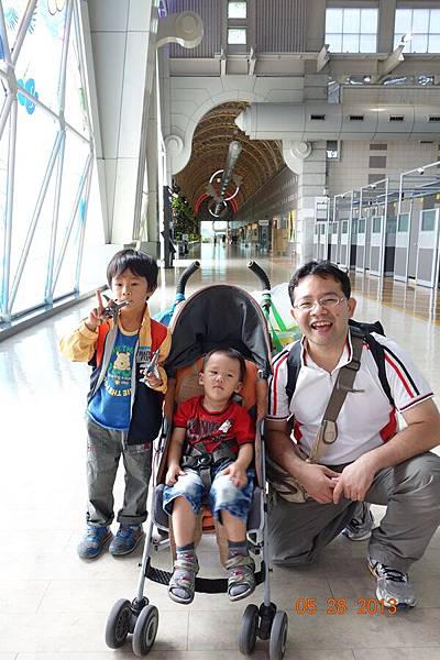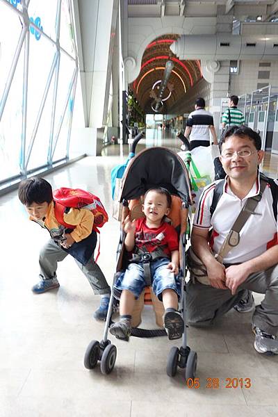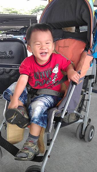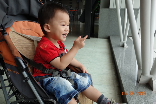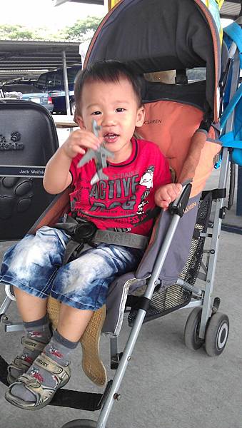 等待接駁車時,睦睦等不及要玩他的小飛機,他等坐飛機等很久了。。。