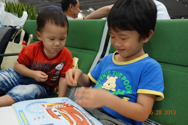 下午2:23,給兩兄弟休憩玩貼紙,都沒運動的他們午餐都沒什麼吃,