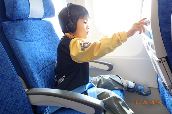 空姐急忙幫我跟弟弟綁好安全帶,弟弟仍然一直吵著要找把拔,