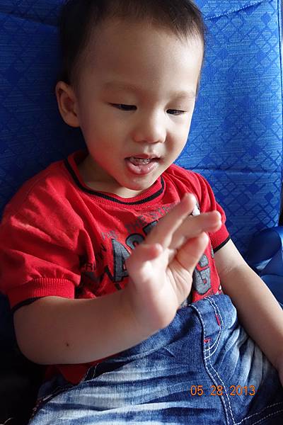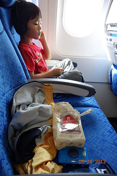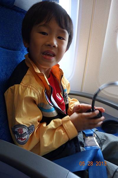 我只好把安全帶鬆掉讓他去找把拔,結果空姐又急忙把baby安全帶換去給把拔然後說"不要再換了"~~~@@