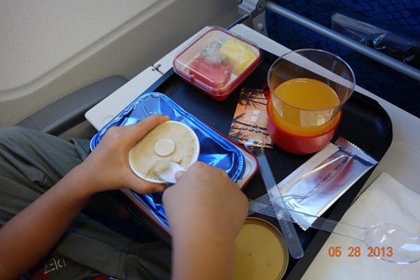接下來是三小時的港龍航空,原以為會像國泰一樣冷所以都穿著外套,