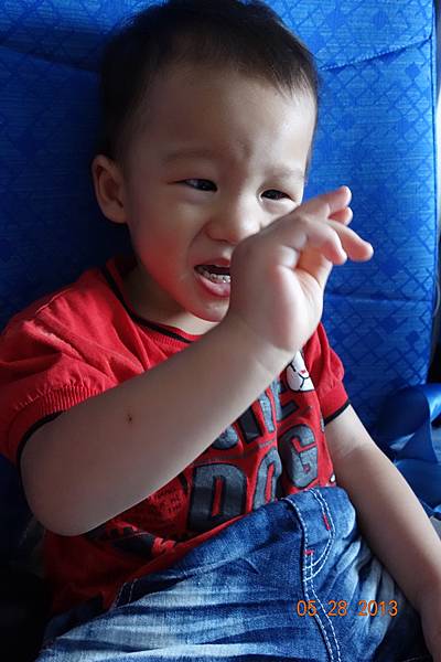 後面的位子放腳的地方很小很擠,弟弟開始一直吵鬧,給他什麼都不要,