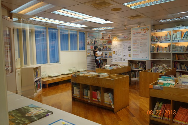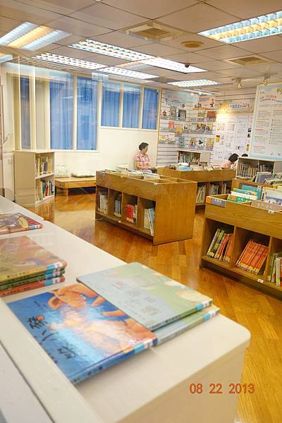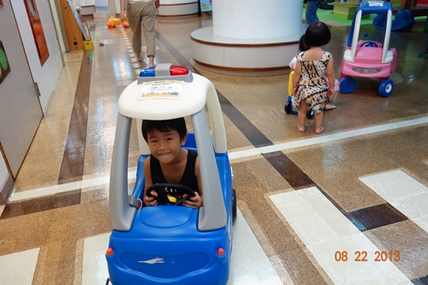 旁邊的圖書室很大,似乎有看不完的書!光是架子上展示的就很吸引人,可是,他們只玩車車。。。