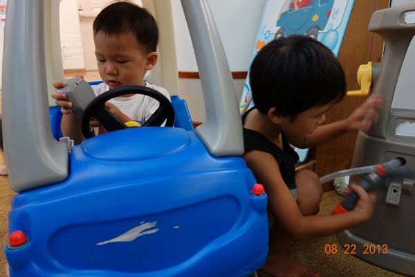 兩個一進去就一直玩車車,弟弟是被影響的,睦只玩車車別的不玩~