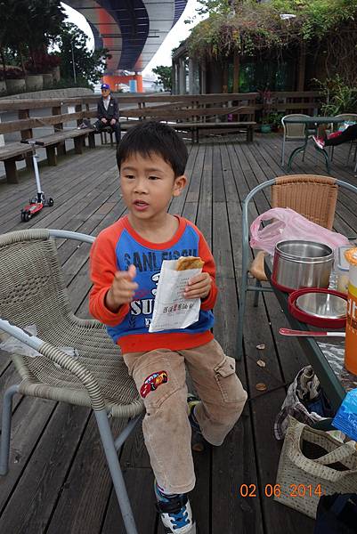 睦睦很賞臉的把葱油餅吃完, 弟弟只有吃水果~~~~