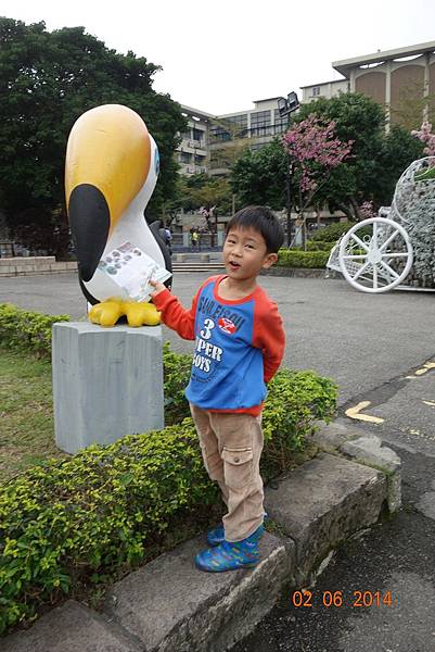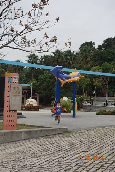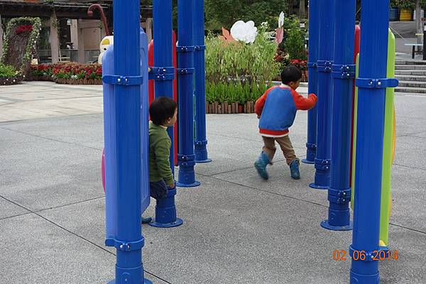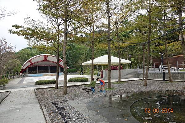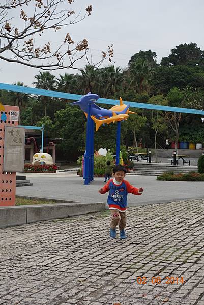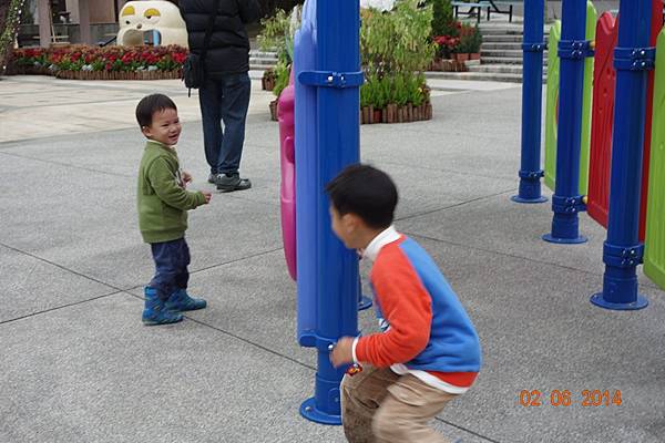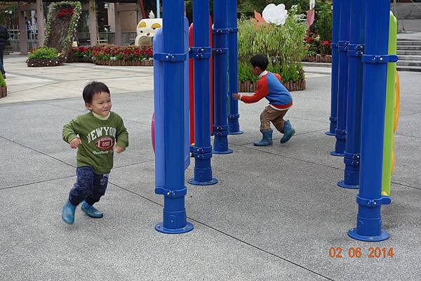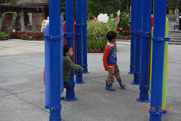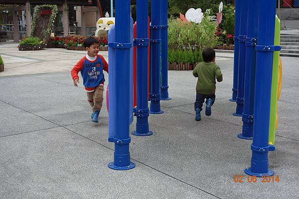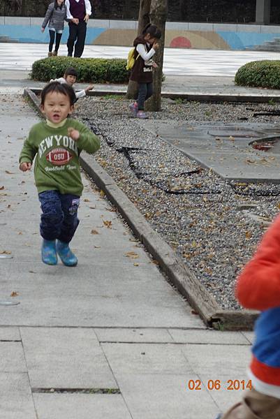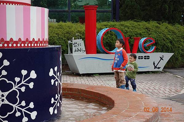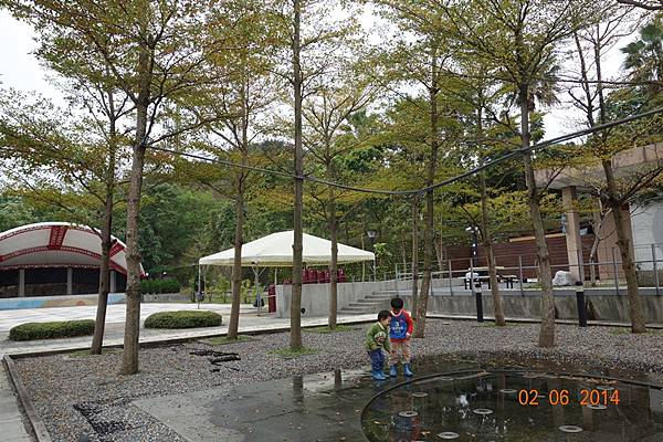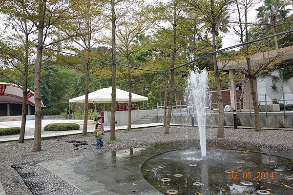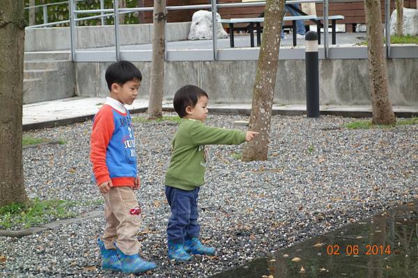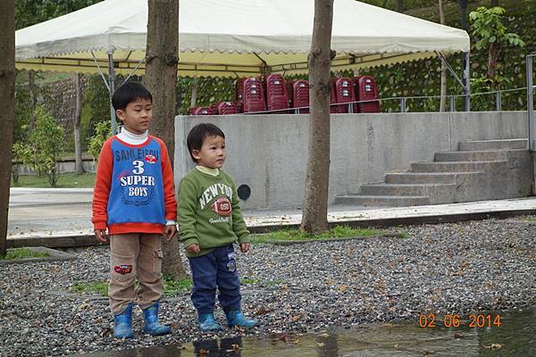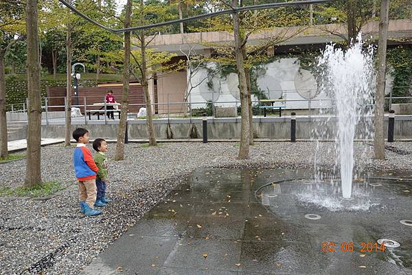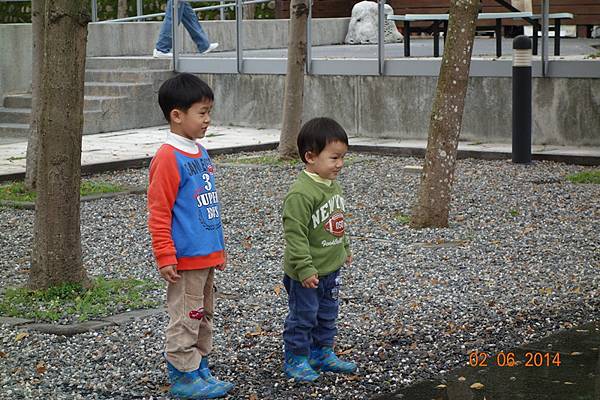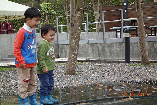 噴水池有中場休息隱藏版,兩小以為沒水了就去踢石子~~