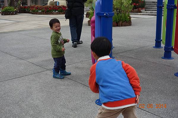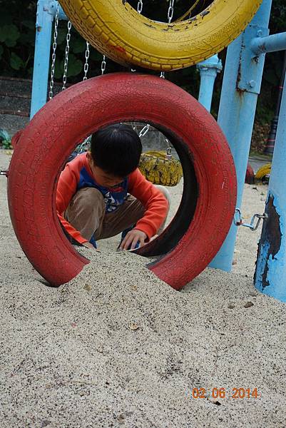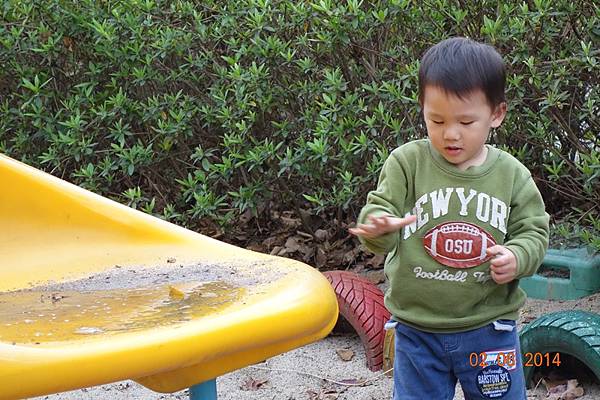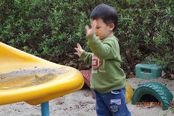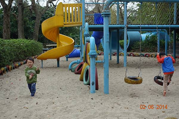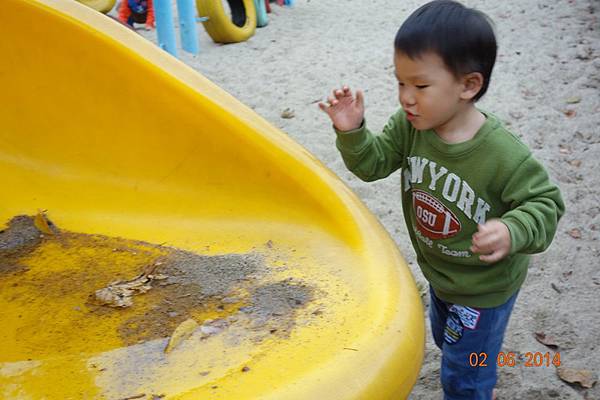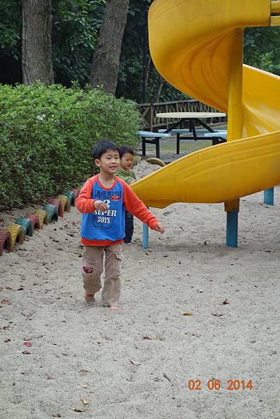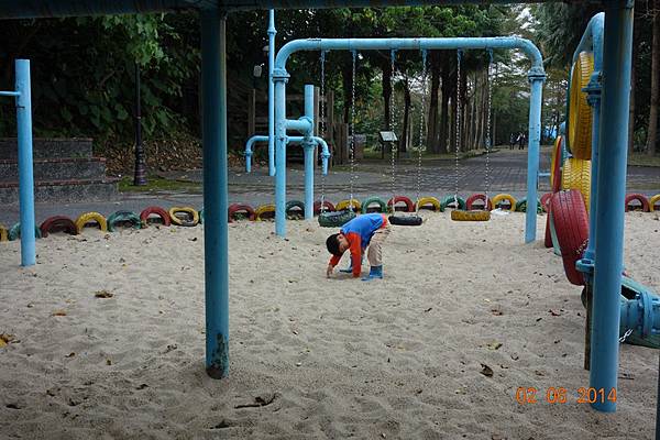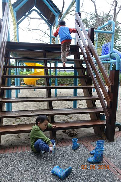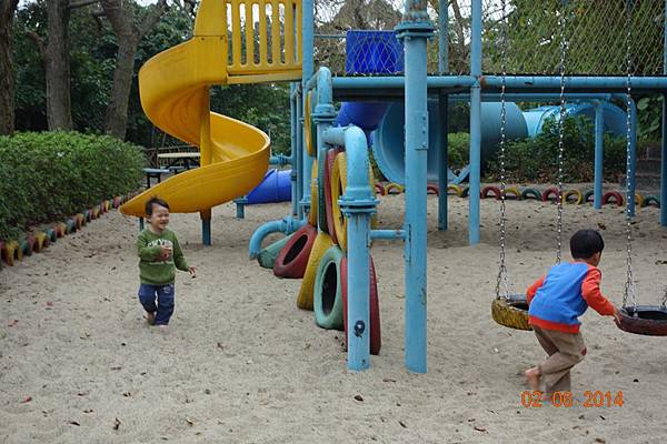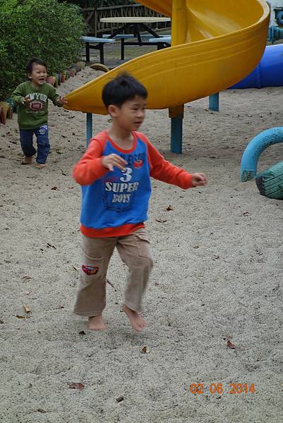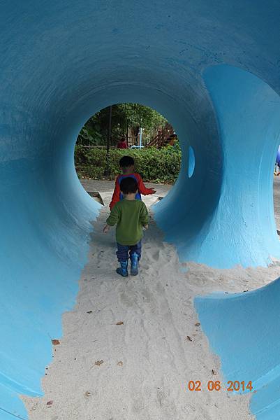 園區後面還有沙坑可以玩呢 ! 而且竟然只有兩個小孩 !