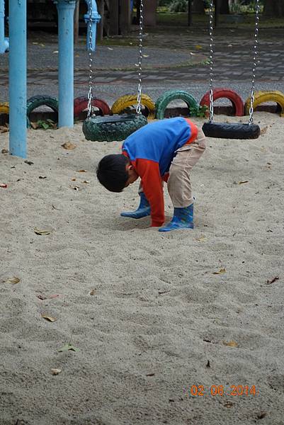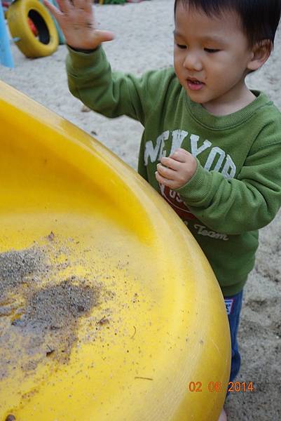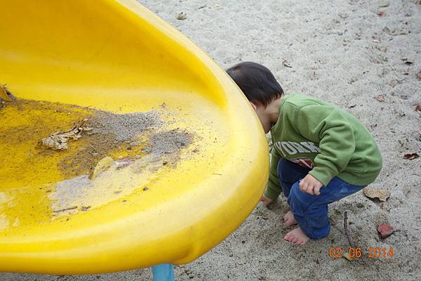 有一個小朋友有如小狗姿勢在掏沙。。。。