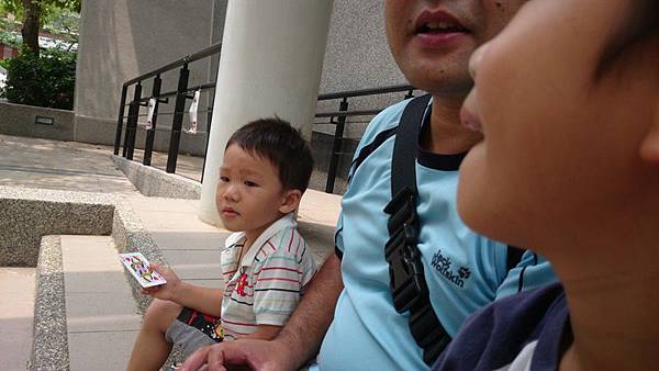 快速吃玩麵後,就在樓梯上跟把拔玩牌~~