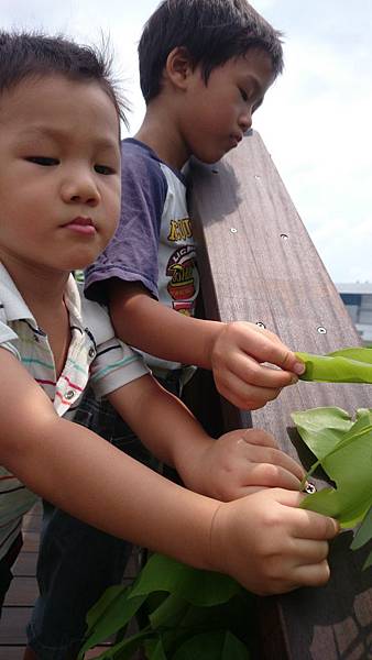 讓他們摸一摸阿勃勒的嫰葉~真舒服~~~